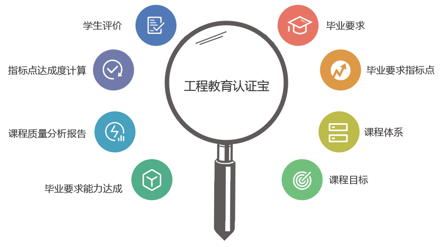 該認證寶是以學生為中心、產出導向為指導、持續改進為方針、解決復雜工程問題為目標,為高校提供工程教育認證的系統化解決方案,全方位智能化支撐工程教育認證需求。目前已在全國多個專業進行測試和應用,并得到積極地反饋。工程教育認證寶充分將教育認證過程產品化、系統化,將認證工作數據可視化,讓認證工作簡潔、專業、高效、智能。